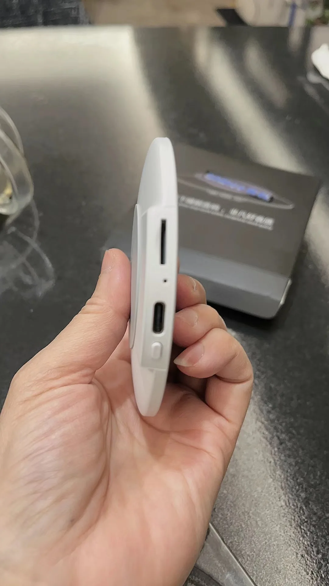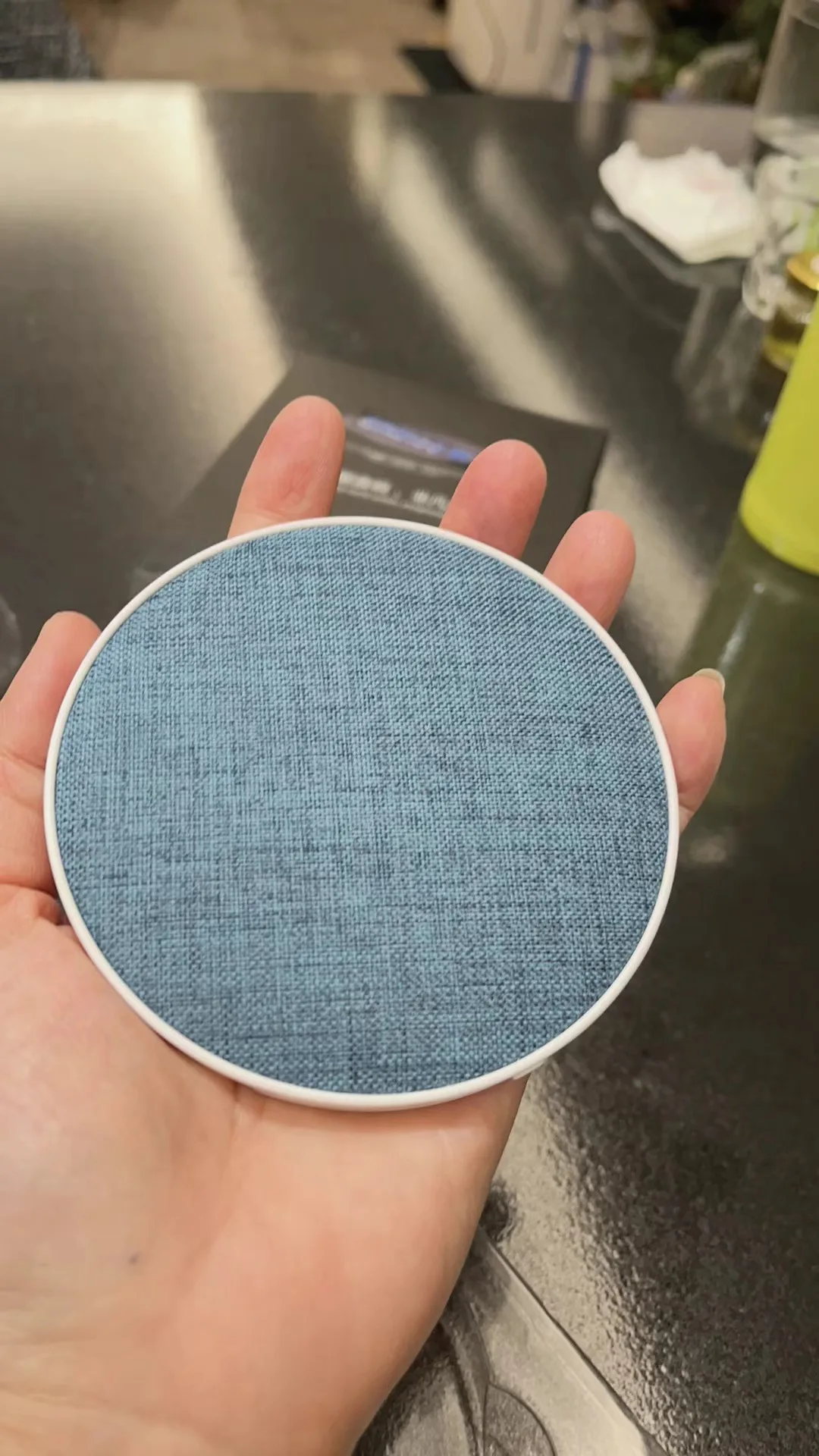 - Long press the power button to turn on the speaker (blue light flashes).